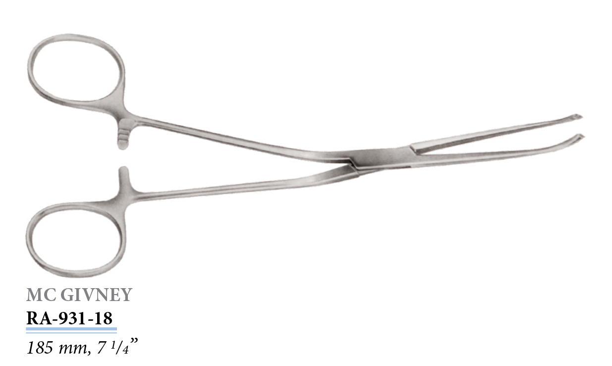 RA-931-18 Mc Givney aranyér fogó, hajlított, 185 mm