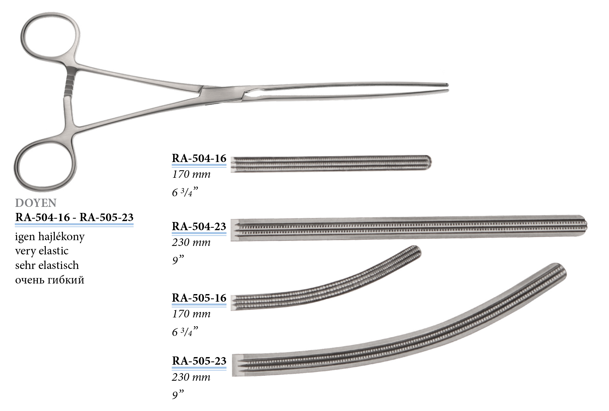 RA-505-23 Doyen bélfogó, hajlított, igen hajlékony, 230 mm