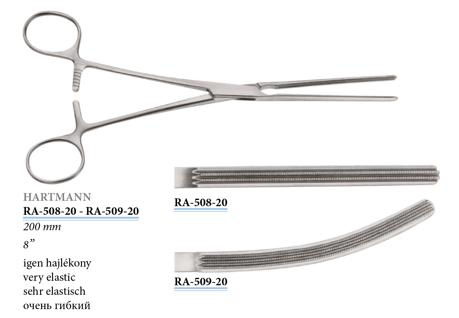 RA-509-20 Hartmann atraumatikus bélfogó, hajlított, igen hajlékony, 200 mm