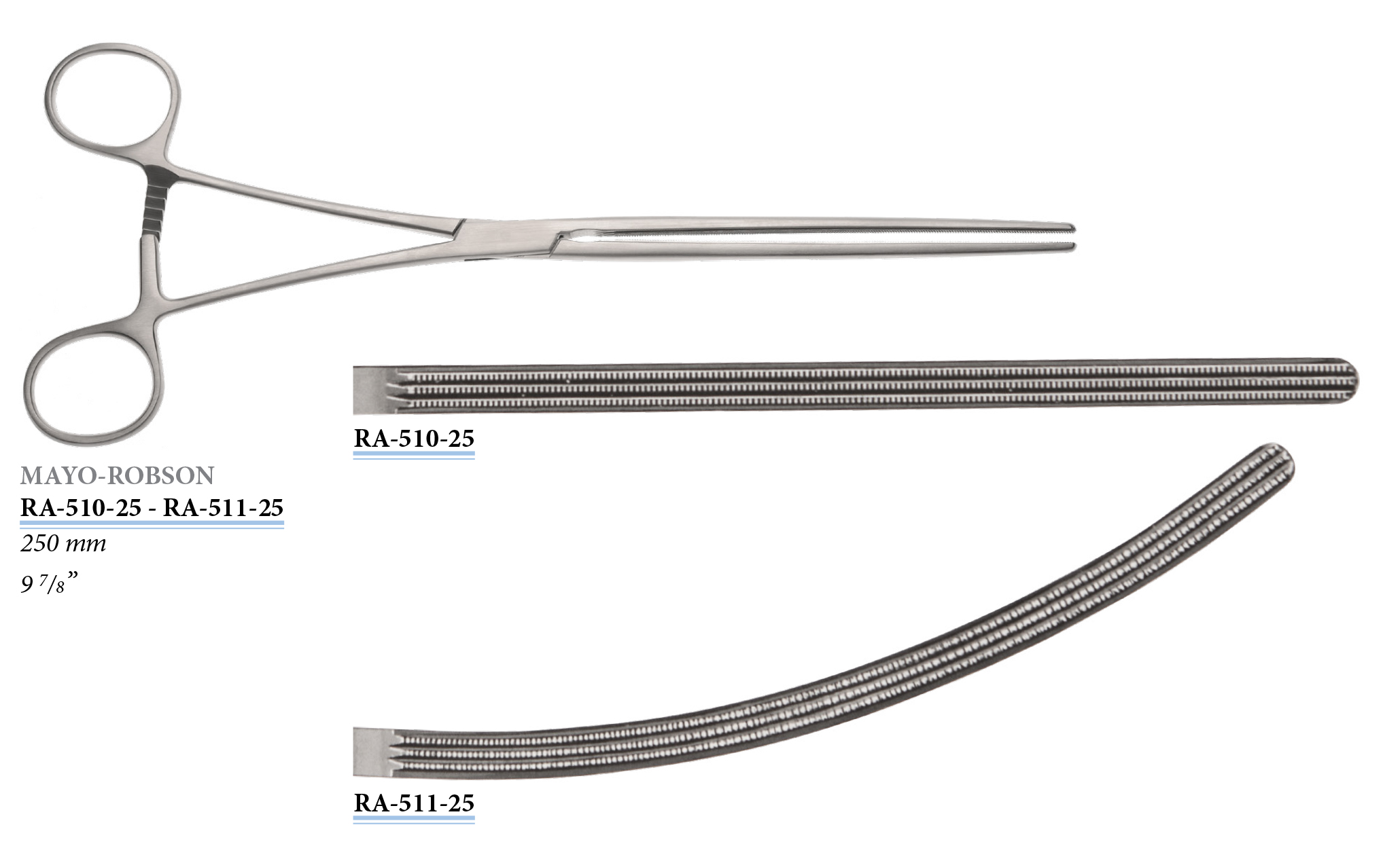 RA-510-25 Mayo-Robson atraumatikus bélfogó, egyenes, 250 mm