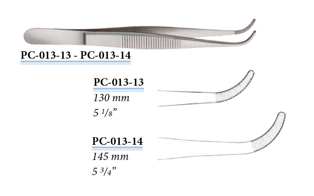PC-013-14 Anatómiai csipesz, keskeny, hajlított, 145 mm