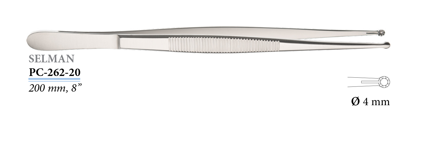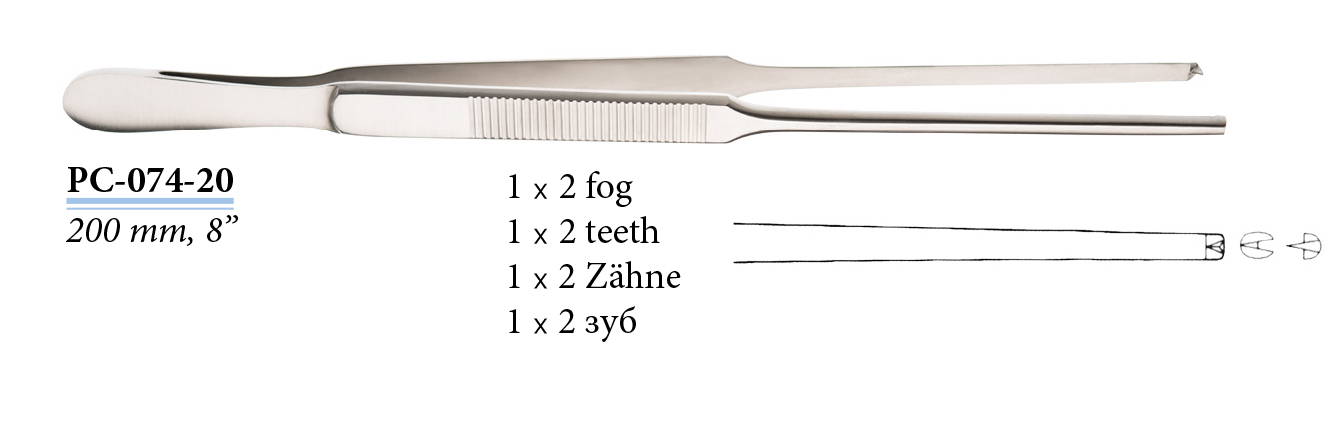 PC-074-20 Nőgyógyászati tampon csipesz, 1x2 foggal, 200 mm
