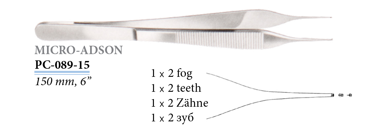 PC-089-15 Micro-Adson finom sebészeti csipesz, 1x2 foggal, 150 mm