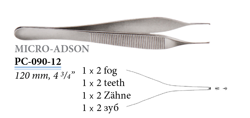 PC-090-12 Micro-Adson csipesz, 1x2 foggal, 120 mm