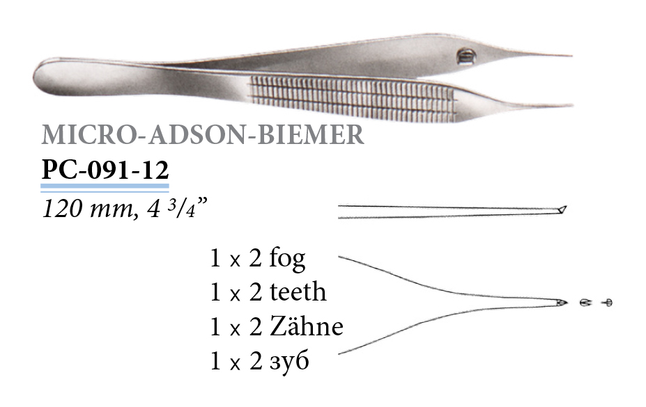PC-091-12 Micro-Adson-Biemer sebészeti csipesz, 120 mm