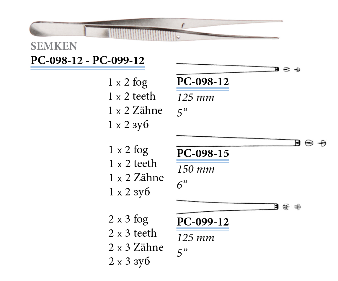 PC-099-12 Semken finom sebészeti csipesz, 2x3 foggal, 125 mm