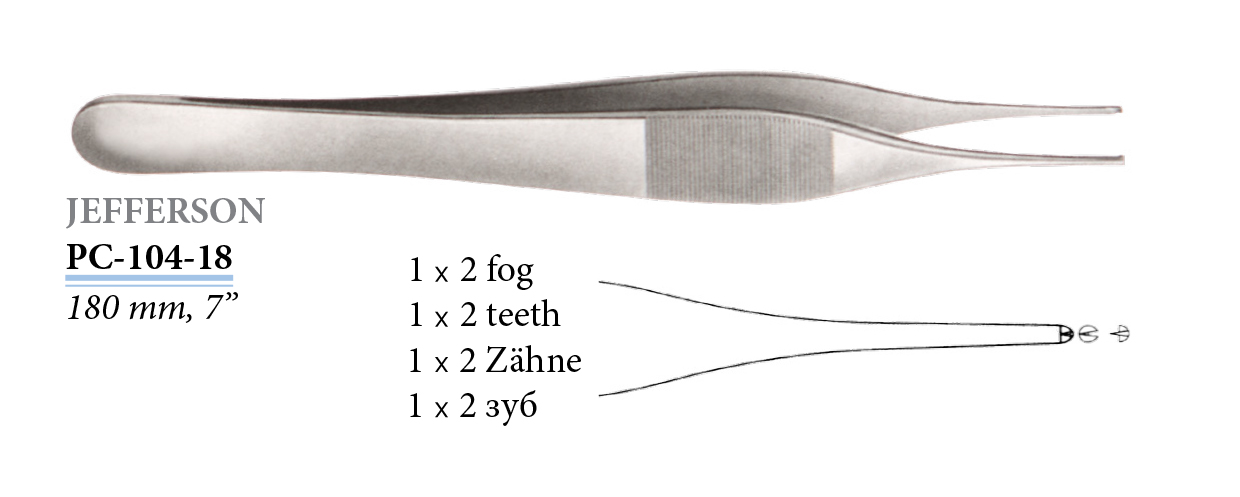 PC-104-18 Jefferson finom sebészeti csipesz, 1x2 foggal, 180 mm