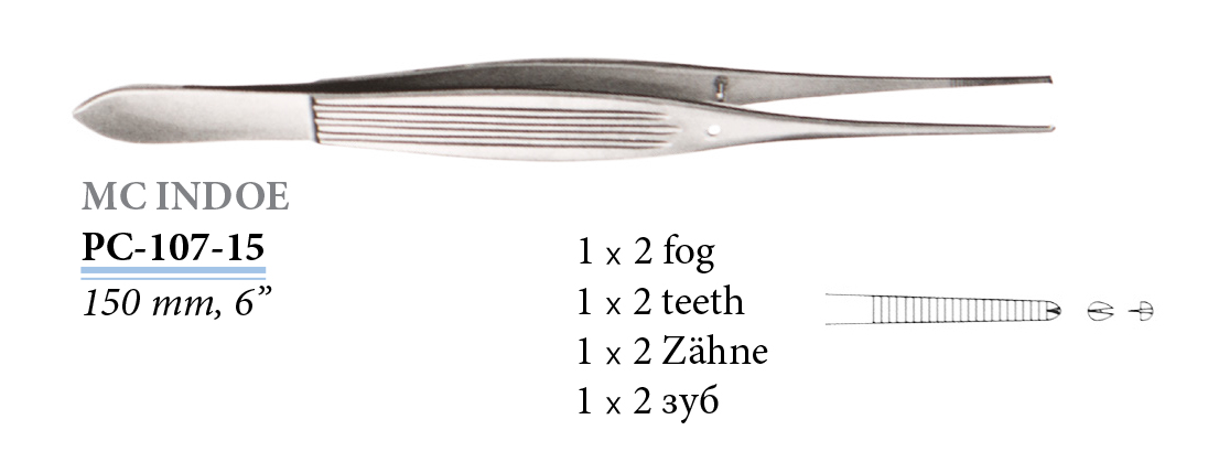 PC-107-15 McIndoe finom sebészeti csipesz, 1x2 foggal, 150 mm