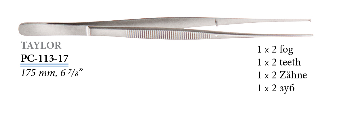 PC-113-17 Taylor finom sebészeti csipesz, egyenes, 1x2 foggal, 175 mm