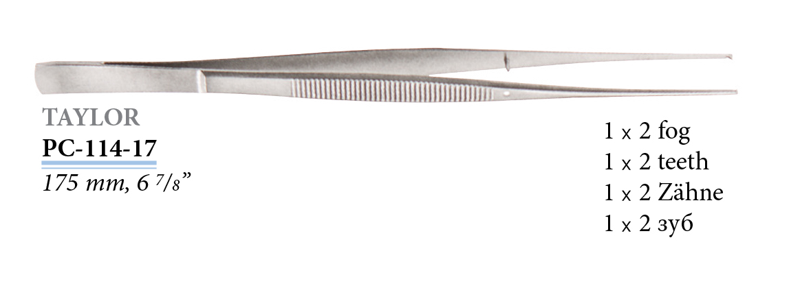 PC-114-17 Taylor finom sebészeti csipesz, egyenes, 1x2 foggal, 175 mm