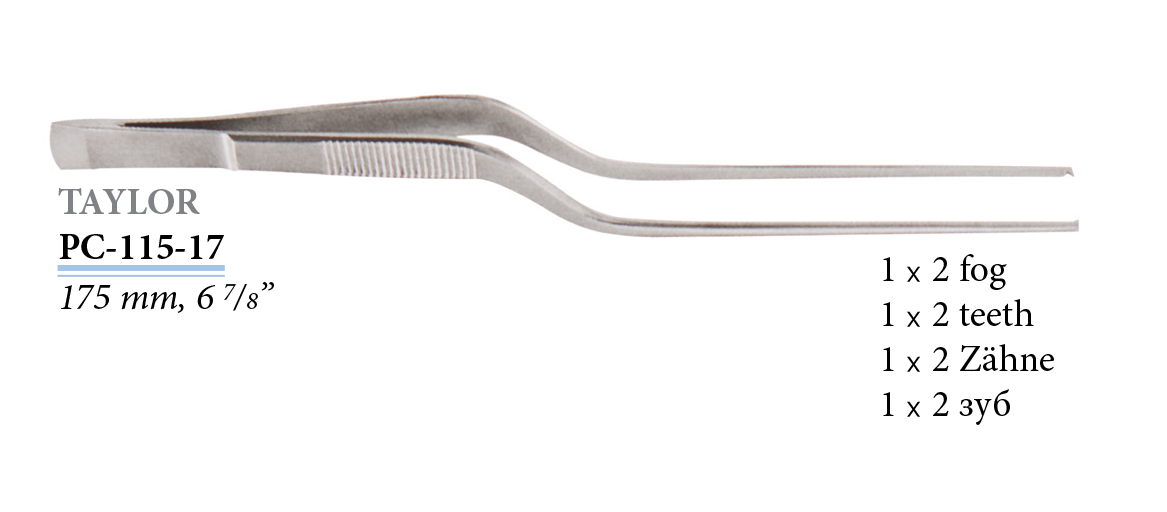PC-115-17 Taylor finom sebészeti csipesz, hajlított, 1x2 foggal, 175 mm