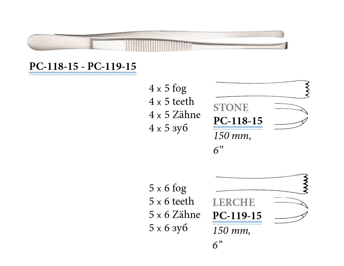PC-118-15 Stone sebészeti csipesz, 4x5 foggal, 150 mm