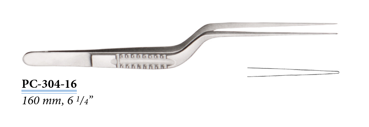 PC-304-16 Bajonett hajlású csipesz, sima pofa, 160 mm
