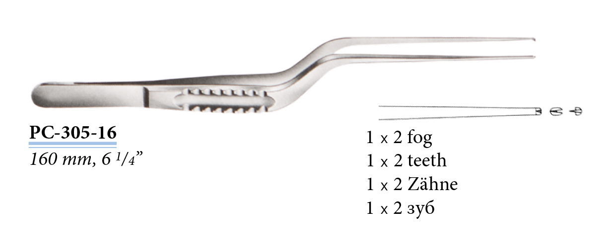 PC-305-16 Dura csipesz, bajonett hajlású, 1x2 foggal, 160 mm