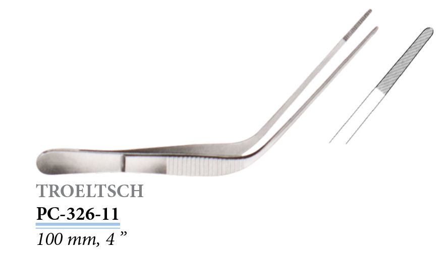 PC-326-11 Troeltsch fülcsipesz, recés pofával, 100 mm