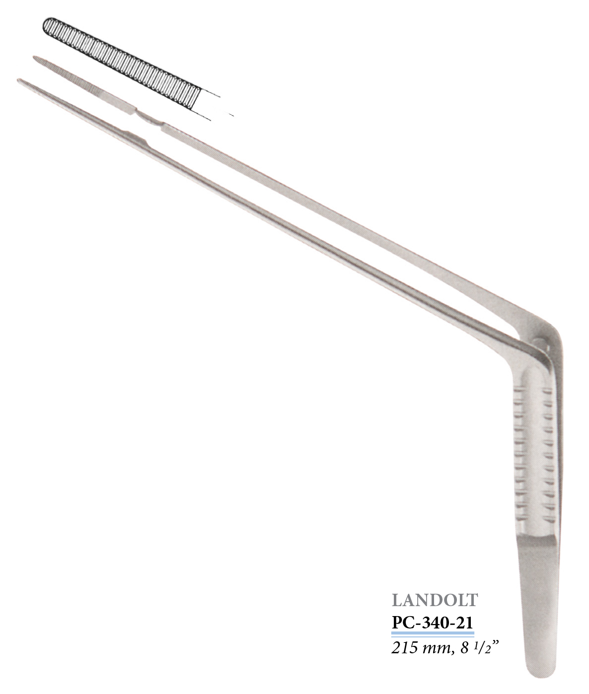PC-340-21 Landolt csipesz, hajlított, 215 mm