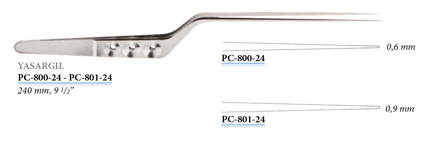 PC-801-24 Yasargil mikro csipesz, bajonett hajlású, 0,9 mm/240 mm