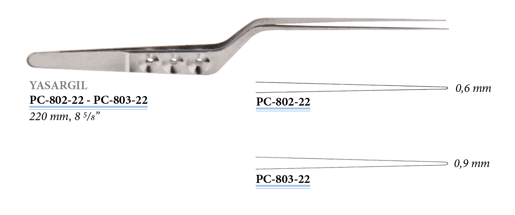 PC-803-22 Yasargil mikro csipesz, bajonett hajlású, 0,9 mm/220 mm