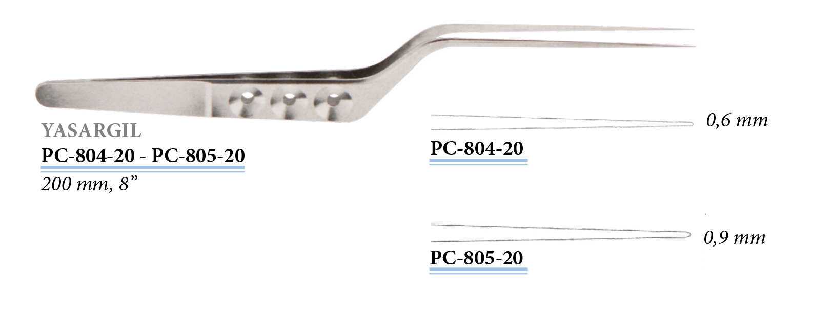 PC-805-20 Yasargil mikro csipesz, bajonett hajlású, 0,9 mm/200 mm