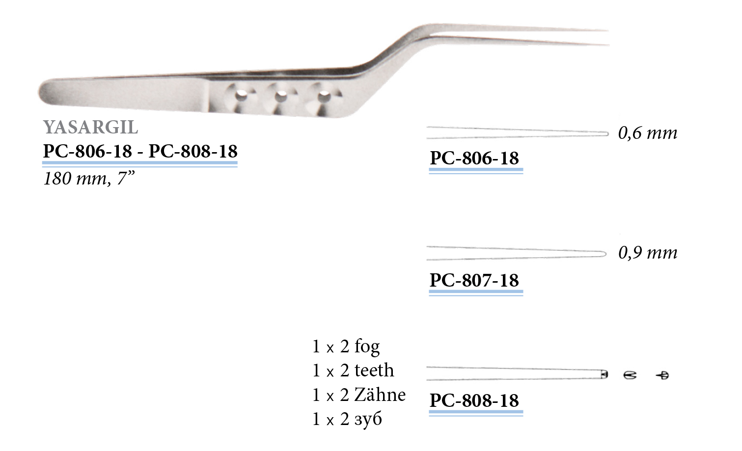 PC-807-18 Yasargil mikro csipesz, bajonett hajlású, 0,9 mm/180 mm