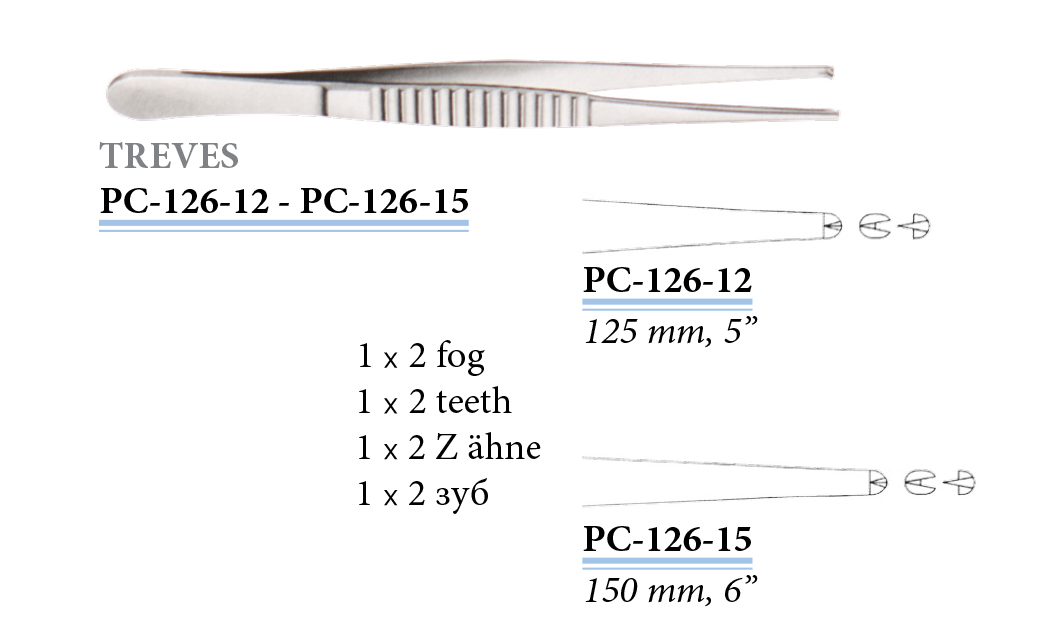PC-126-12 Treves sebészeti csipesz, 1x2 foggal, 125 mm
