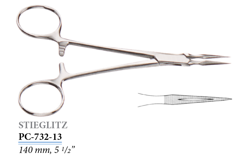PC-733-13 Stieglitz szálkacsipesz, hajlított, 140 mm