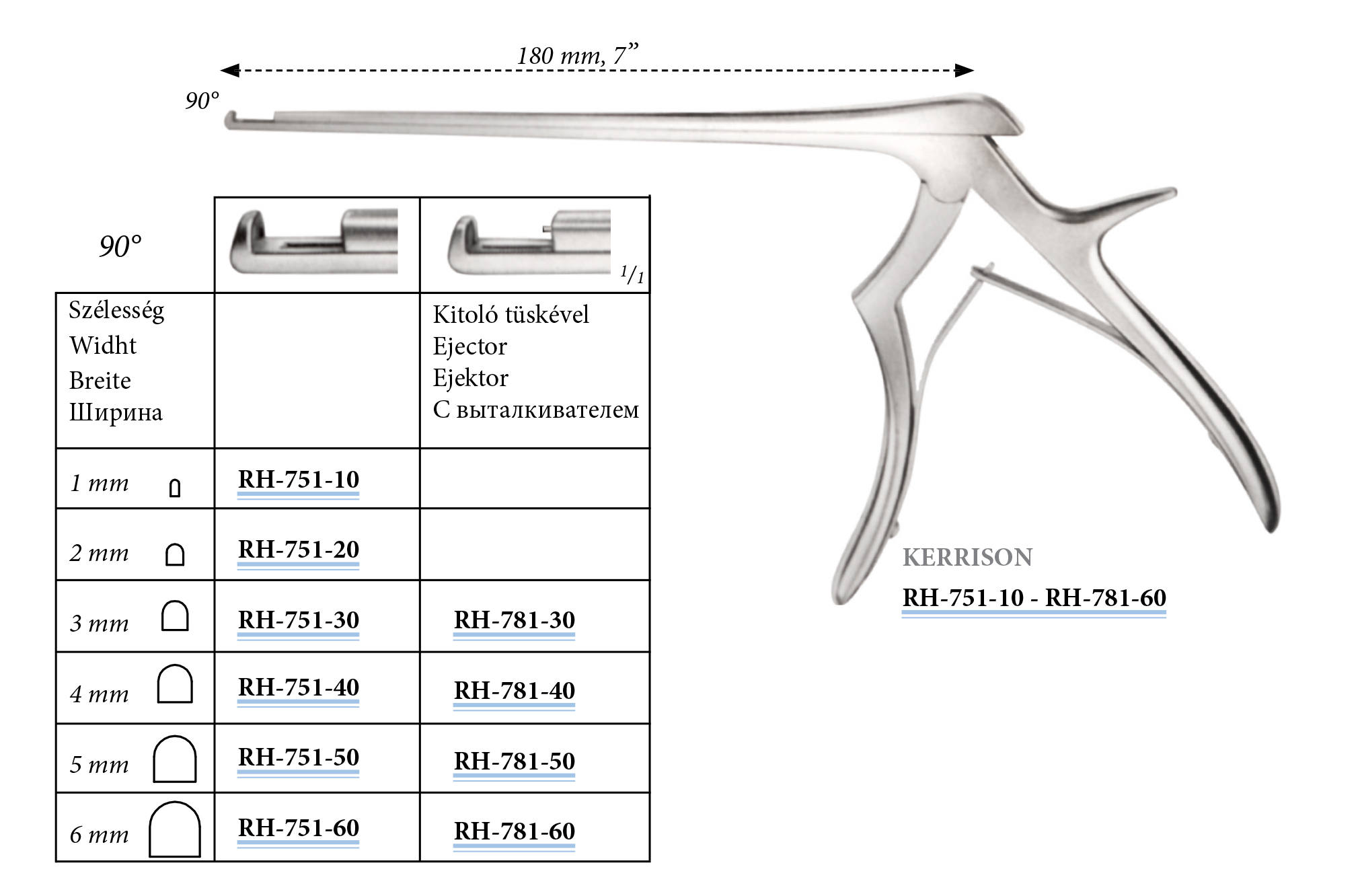 RH-751-20 Kerrison kicsípő, 90°, 2 mm, 180 mm