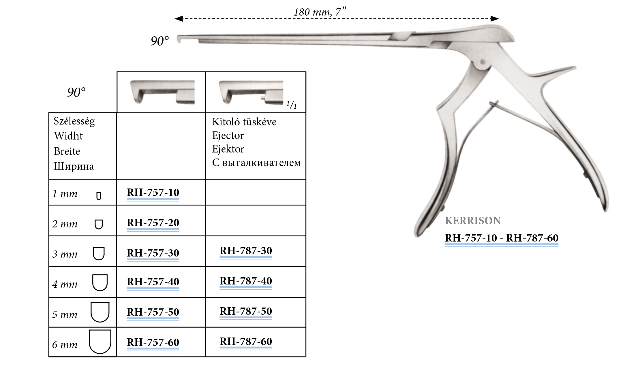 RH-757-10 Kerrison kicsípő, 90°, alulvágó, 1 mm, 180 mm