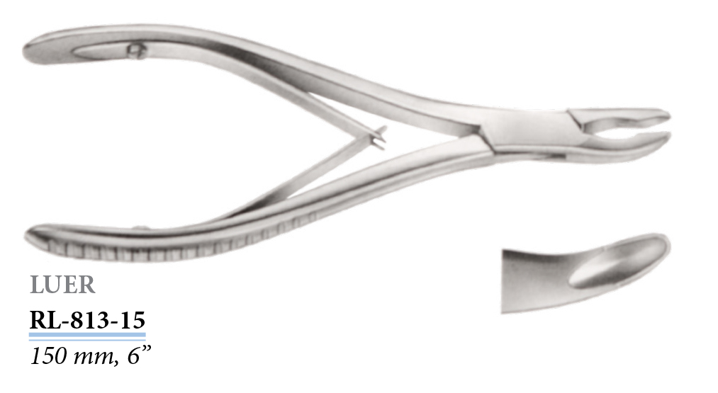 RL-813-15 Luer csontcsípő, hajlított, 150 mm