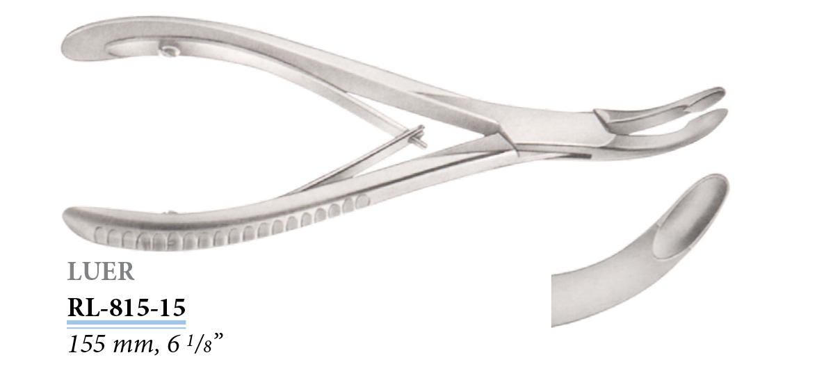 RL-815-15 Luer csontcsípő, hajlított, 155 mm