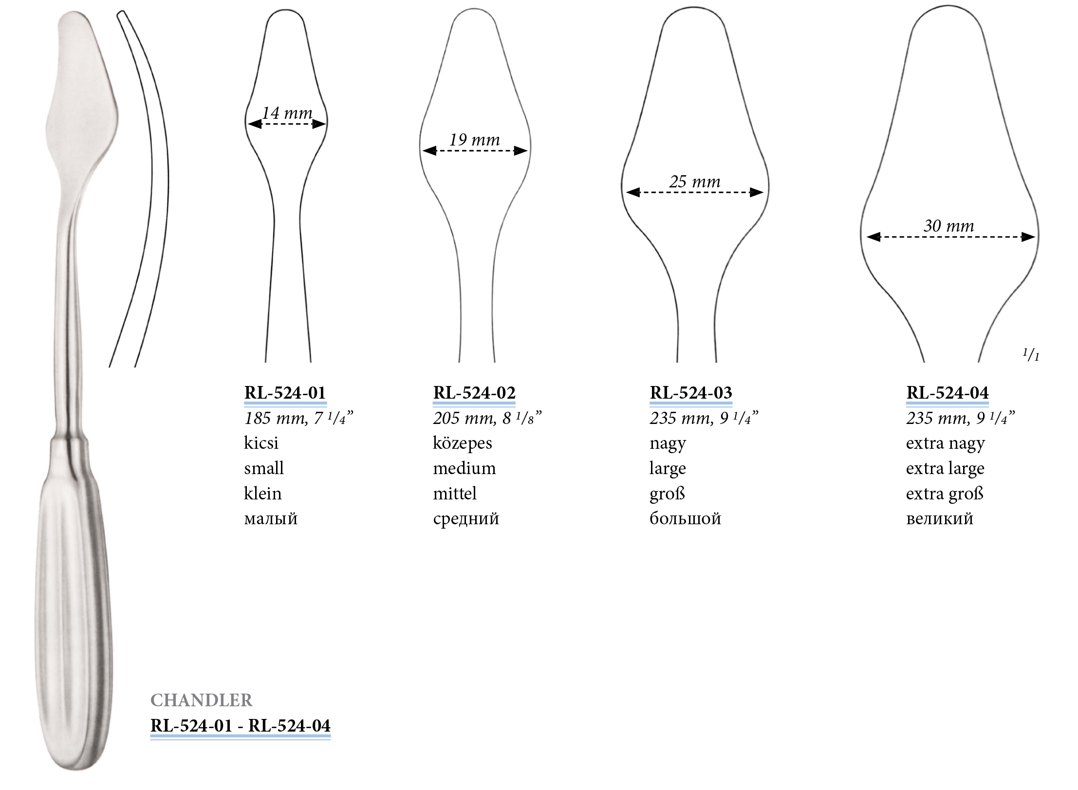 RL-524-01 Chandler elevátor, kicsi, 14 mm, 185 mm