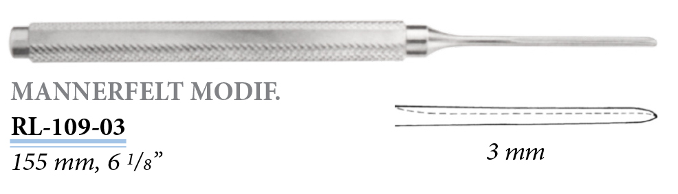 RL-109-03 Mannerfelt modif. vájtvéső, egyenes, 3 mm, 155 mm