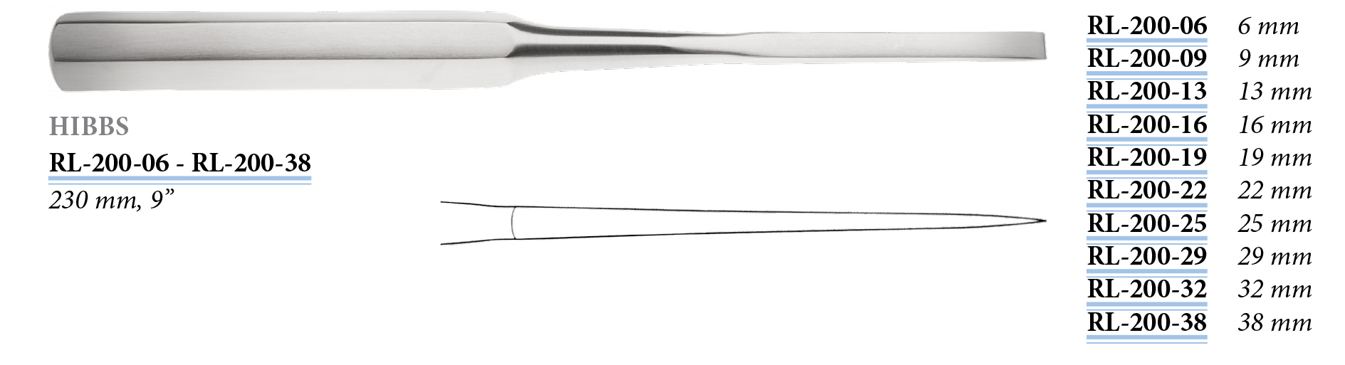 RL-200-38 Hibbs csontvéső, egyenes, 38 mm, 230 mm
