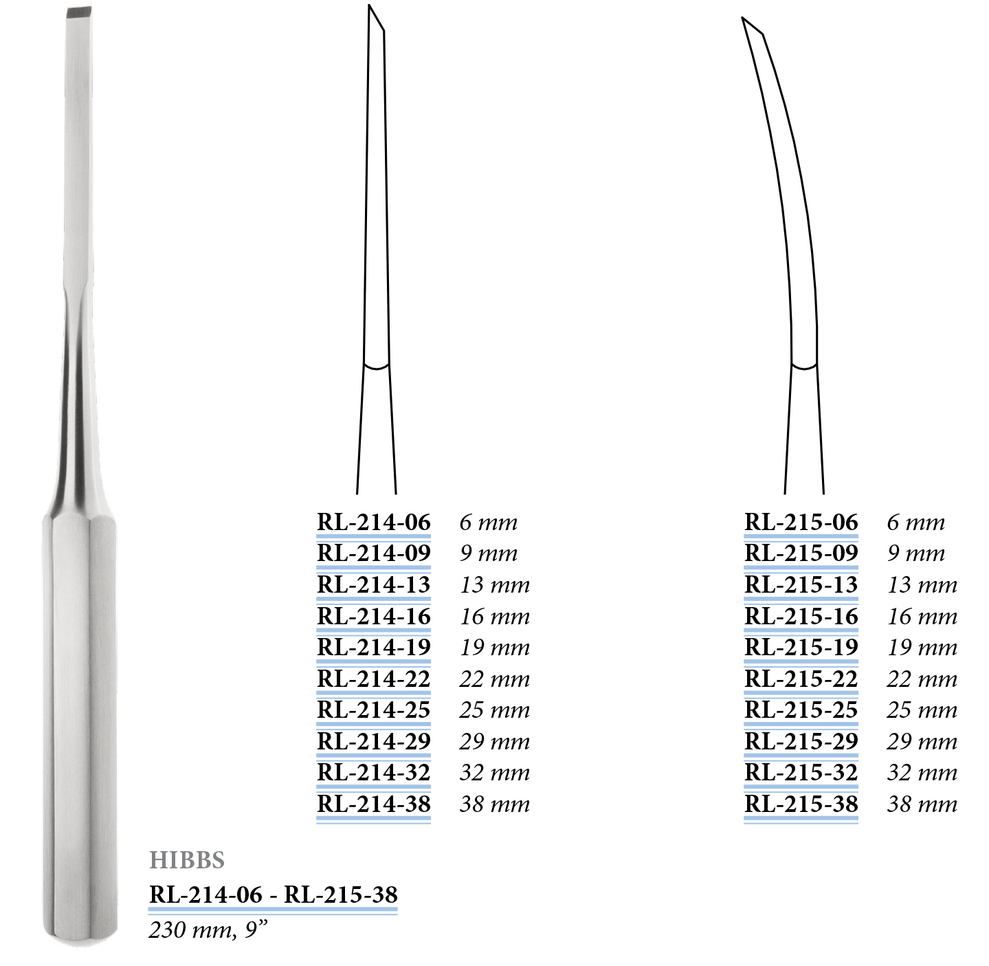 RL-214-25 Hibbs csontvéső, egyenes, 25 mm, 230 mm
