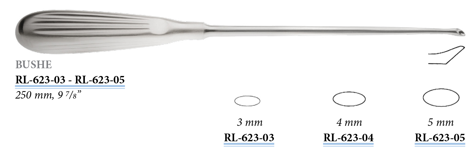 RL-623-05 Bushe éles kanál, 5 mm, 250 mm