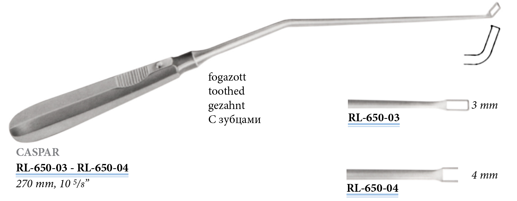 RL-648-04 Caspar éles kanál, fogazott, 4 mm, 220 mm