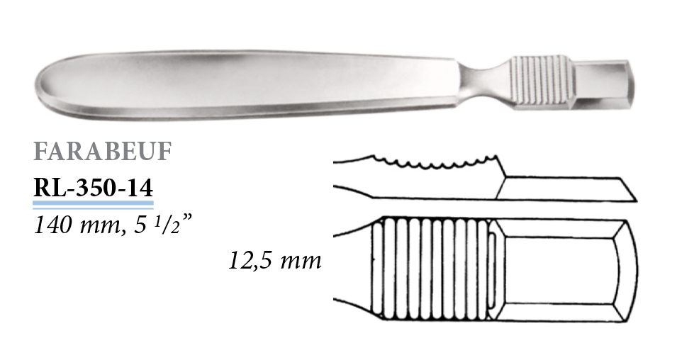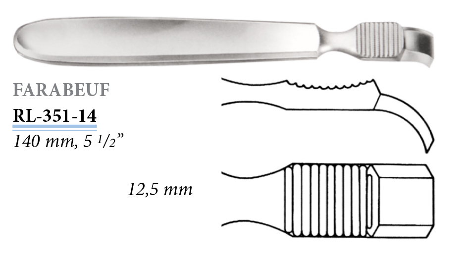 RL-350-14 Farabeuf raspatórium, egyenes, 12,5 mm, 140 mm
