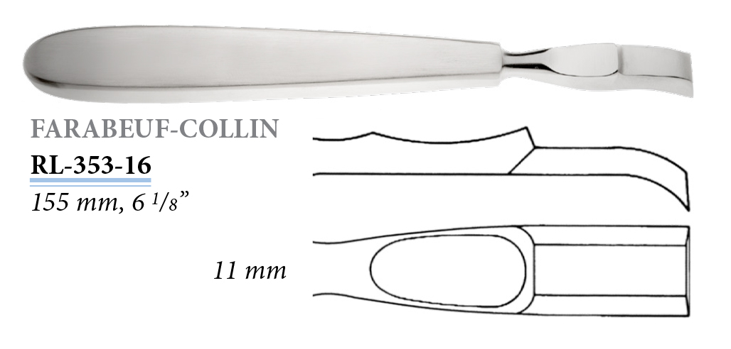 RL-352-16 Farabeuf-Collin raspatórium, egyenes, 11 mm, 155 mm