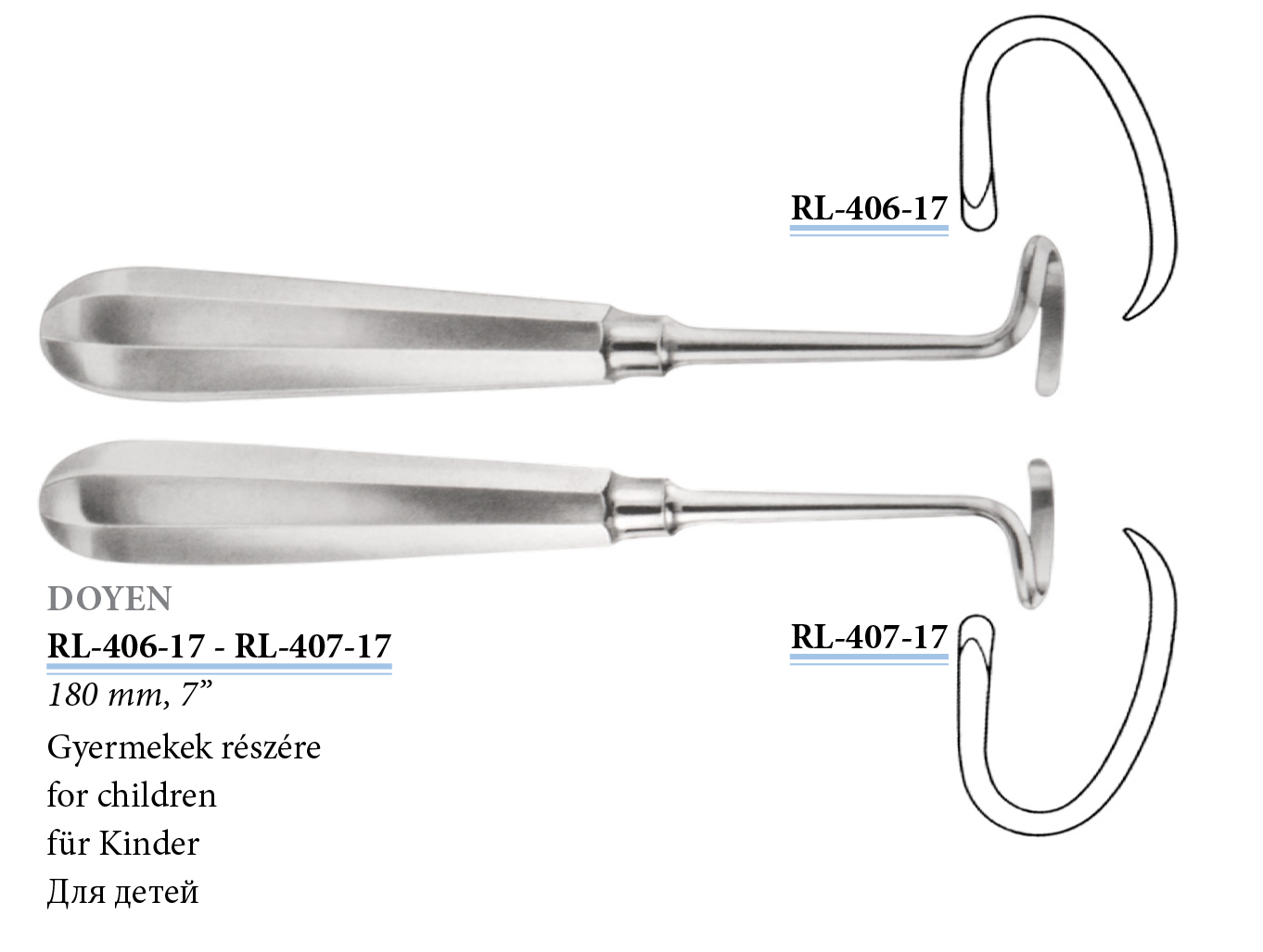 RL-407-17 Doyen bordaraspatórium, balos, gyermekeknek, 180 mm