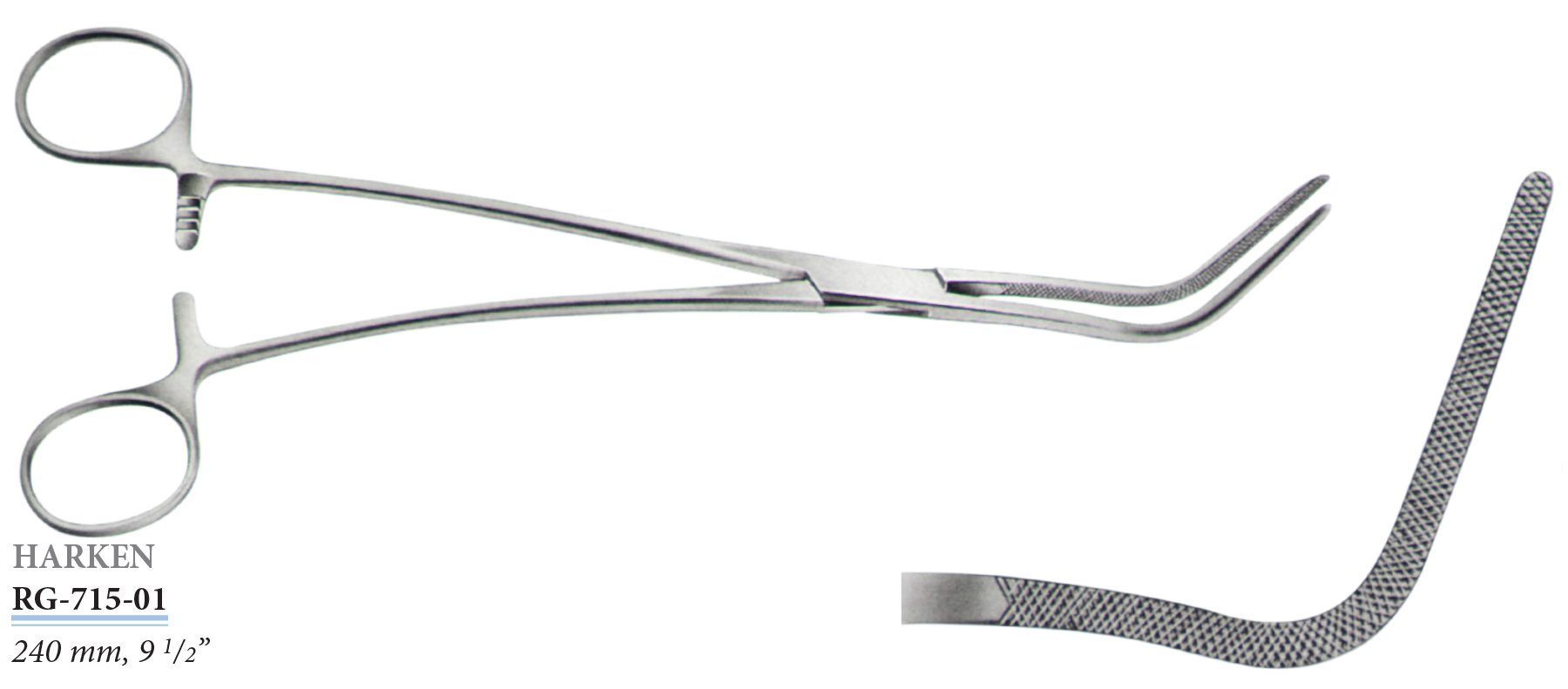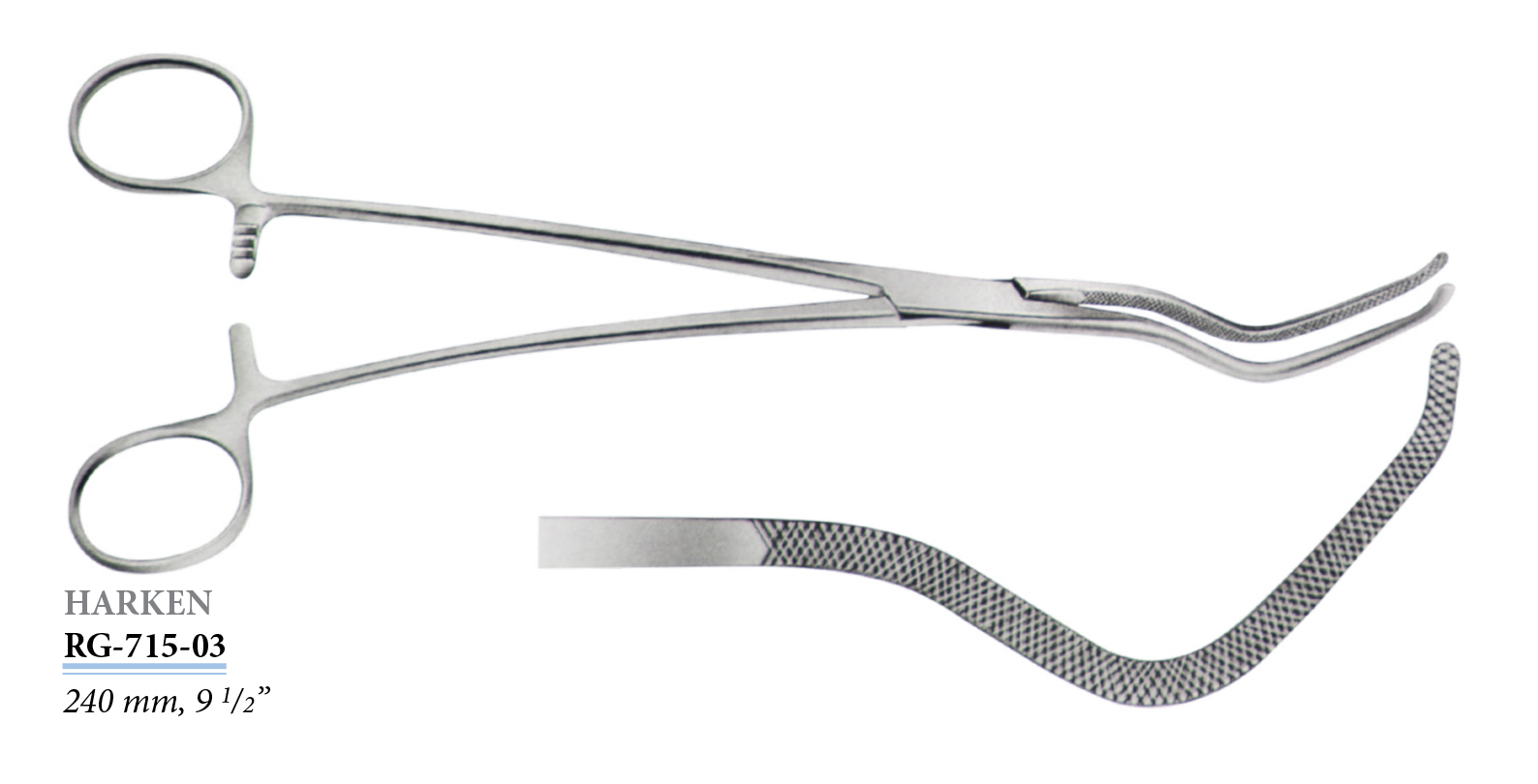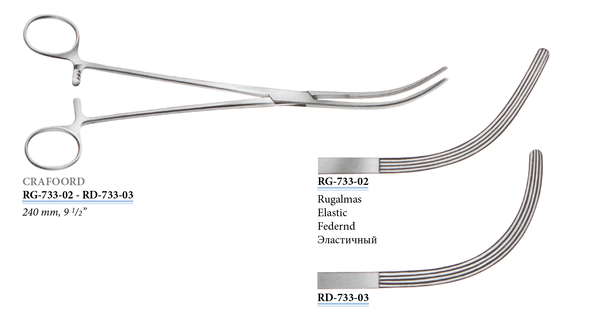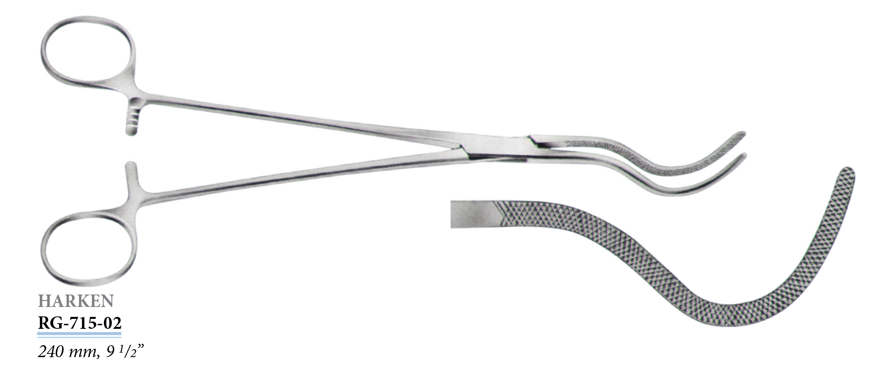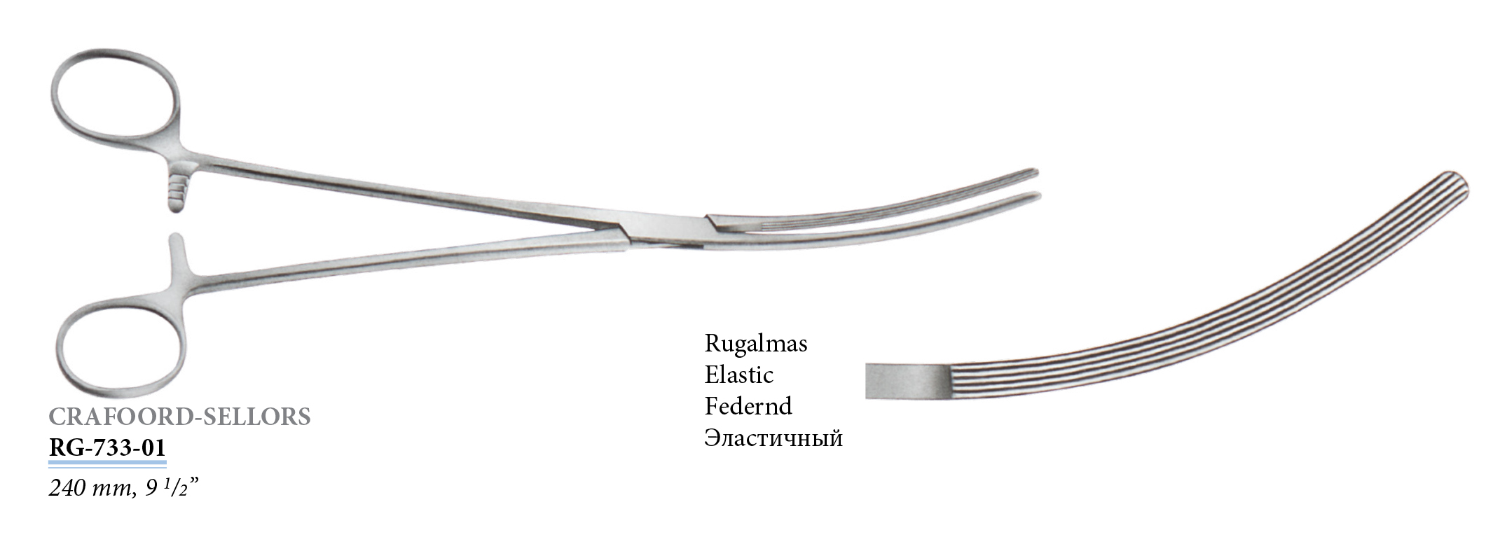 RG-733-01 Crafoord-Sellors érfogó, hajlított, rugalmas, 240 mm