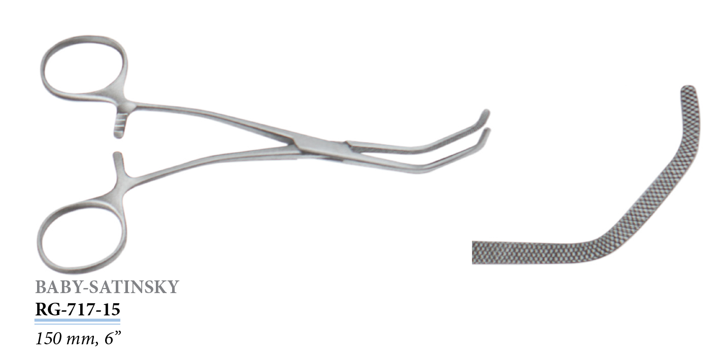 RG-717-15 Baby-Satinsky érkirekesztő fogó, hajlított, 150 mm