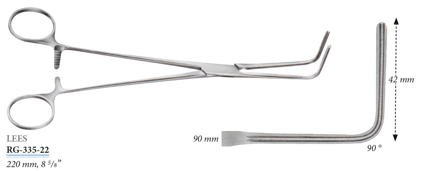 RG-335-22 Lees atraumatikus hörgő fogó, hajlított, 90°, 42 mm, 220 mm