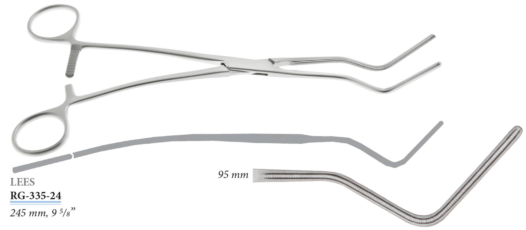 RG-335-24 Lees atraumatikus hörgő fogó, hajlított, 95 mm, 245 mm