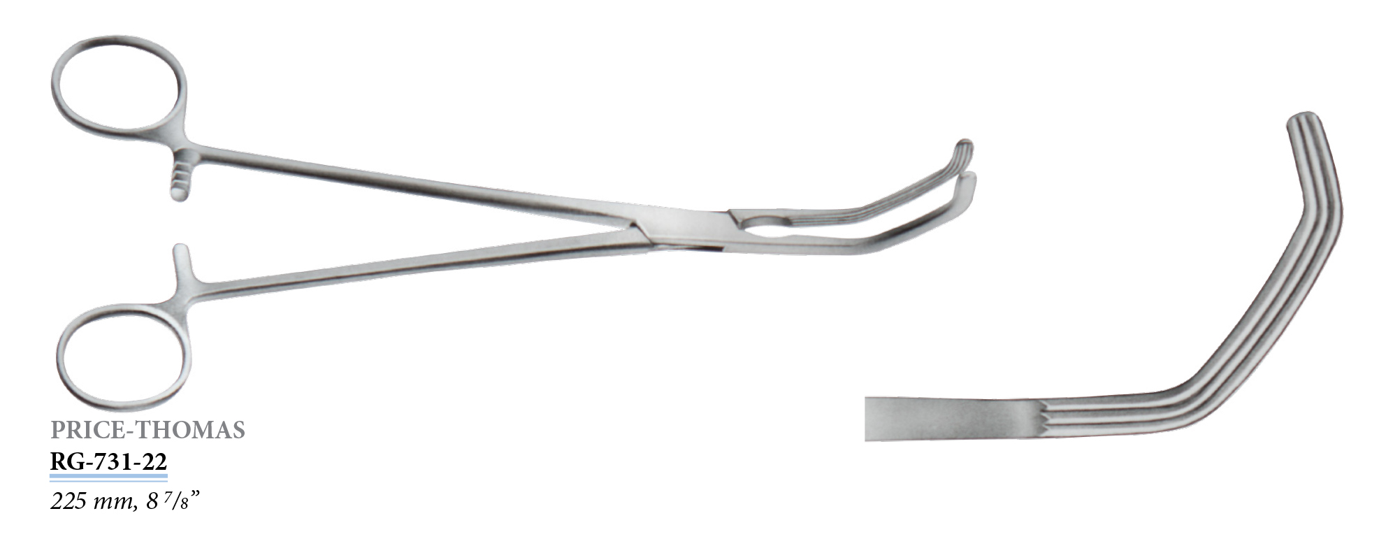 RG-731-22 Price-Thomas hörgő fogó, hajlított, 225 mm
