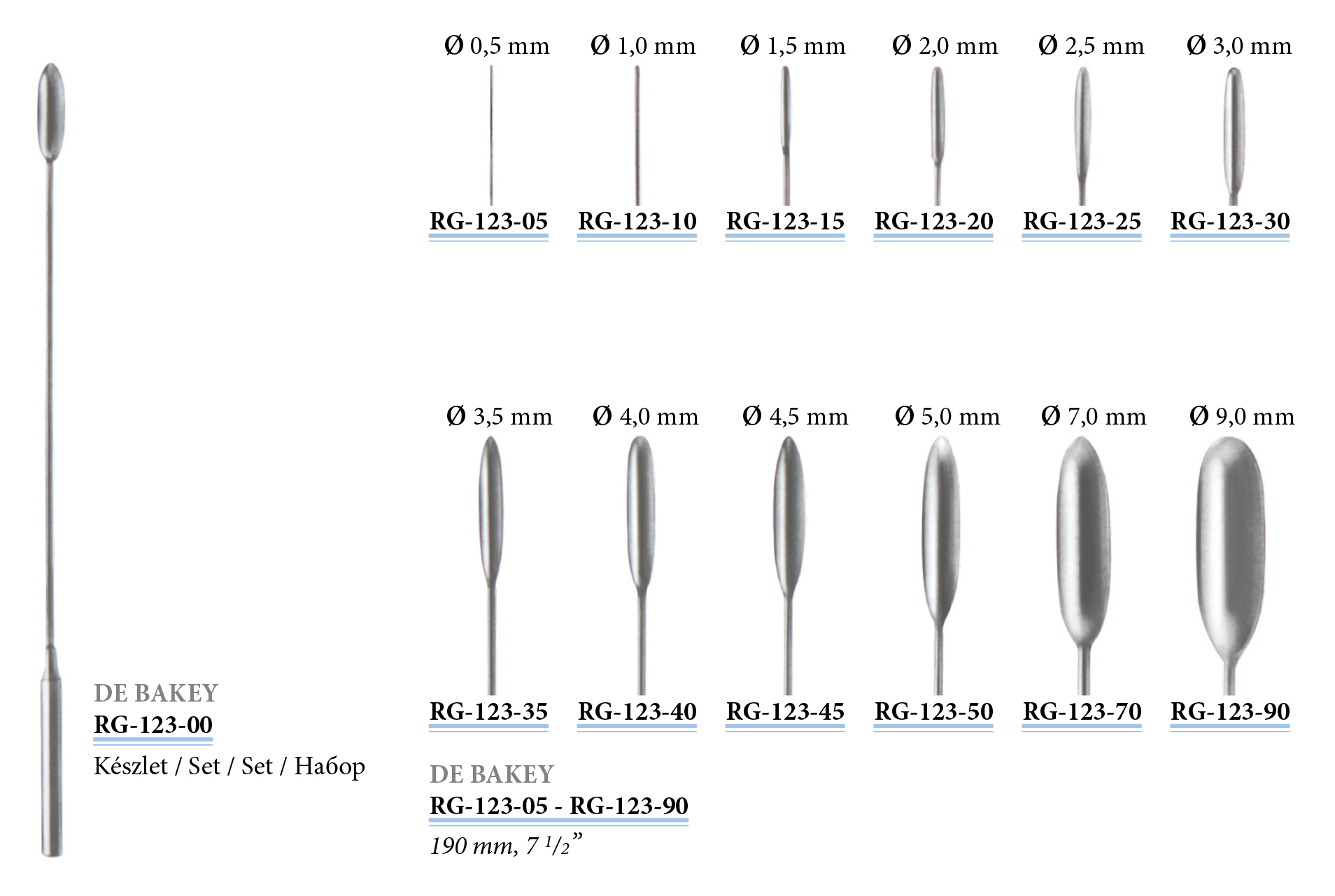 RG-123-05 De Bakey vénatágító szonda, d=0,5 mm, 190 mm