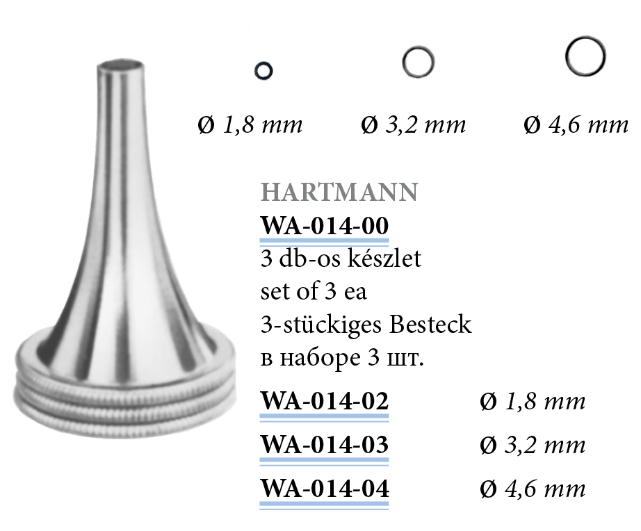 WA-014-00 Hartmann fültölcsér készlet (3 db), gyermekeknek