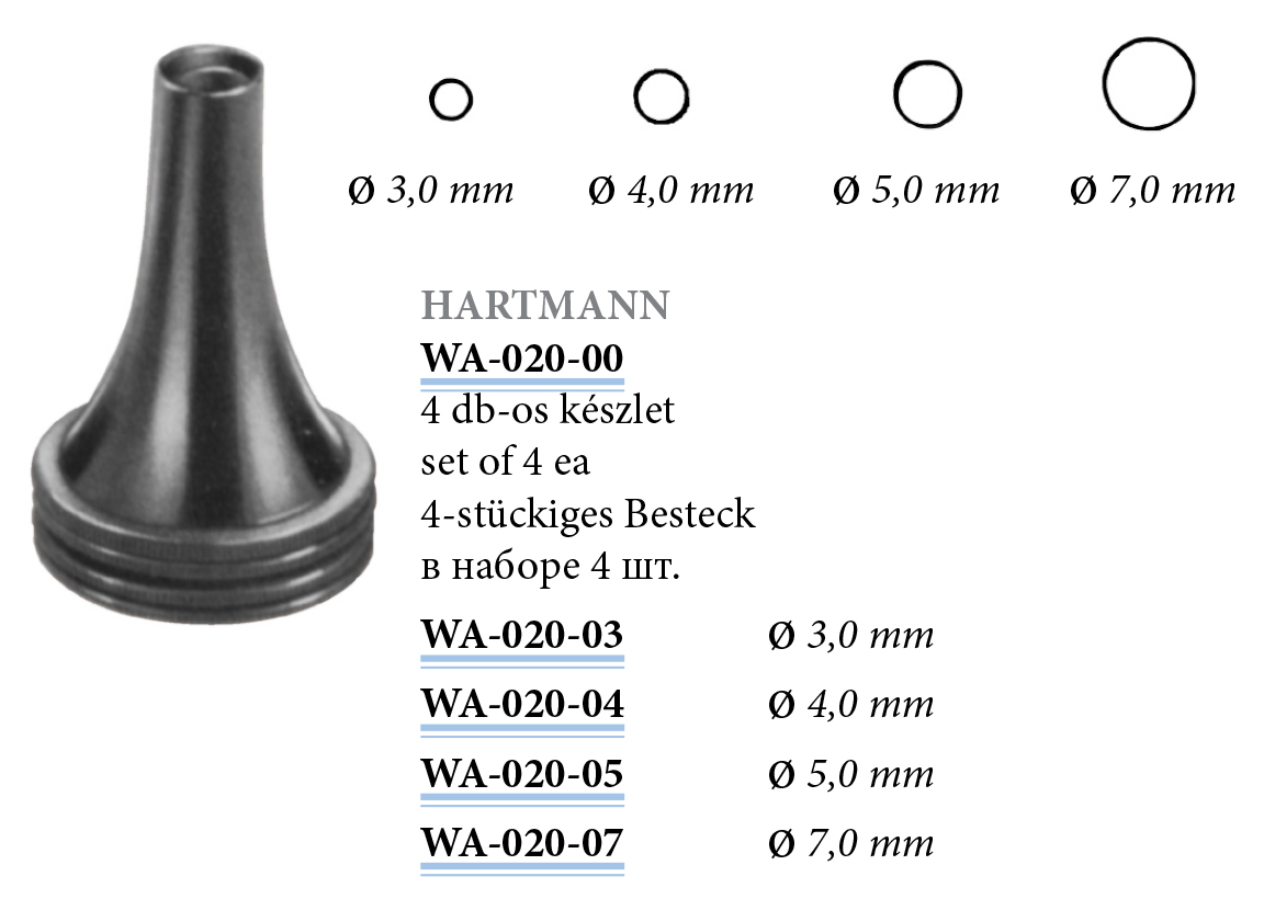 WA-020-00 Hartmann fültölcsér készlet (4 db), felnőtteknek