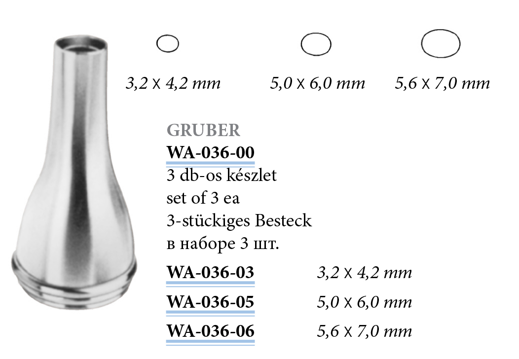 WA-036-00 Gruber fültölcsér készlet (3 db), felnőtteknek, ovális