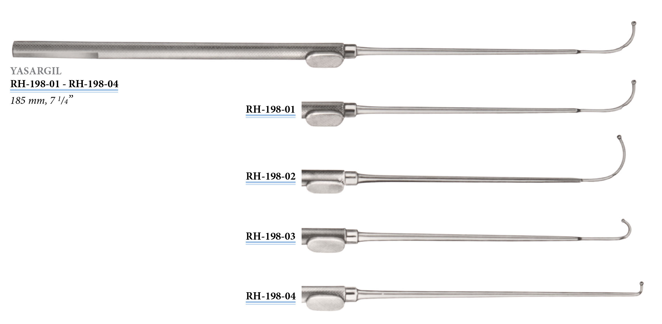 RH-198-04 Yasargil fonalvezető, szondavégű, 185 mm