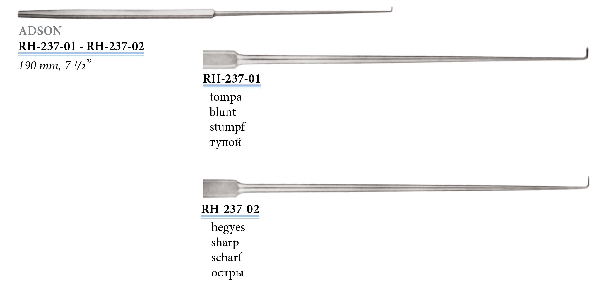 RH-237-01 Adson ideg- és érkampó, tompa, 190 mm